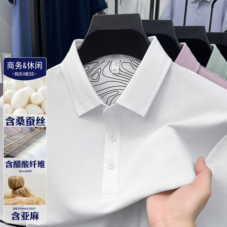 【2026新款短袖】t恤男夏季圆领打底衫半高领丝光棉半袖桑蚕丝V领纯棉翻领polo衫冰丝开衫短袖衬衫纯色中年立领体恤